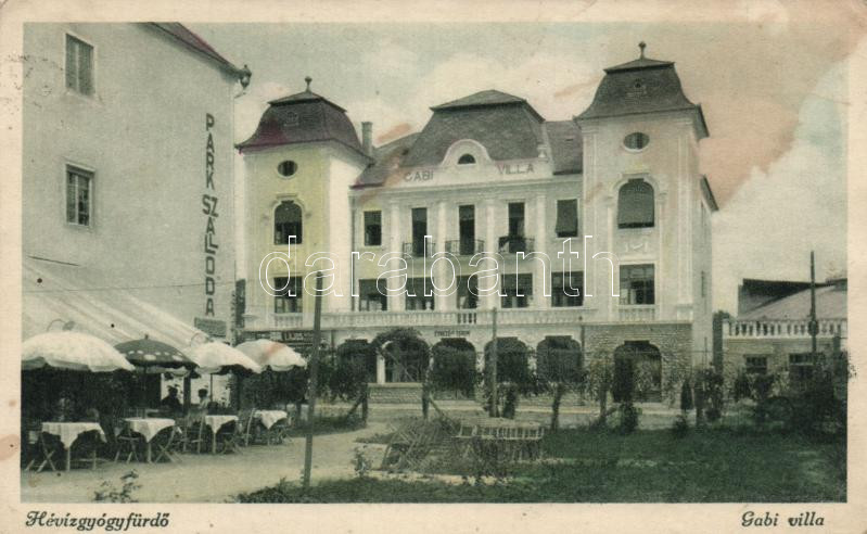 Hévíz gyógyfürdő Gabi villa, Park szálloda (EK) https://www.darabanth.com/de/179-Fernauktion/179.0/Ansichtskarten/Ungarn~600006/Heviz-gyogyfurdo-Gabi-villa-Park-szalloda-EK~II636535