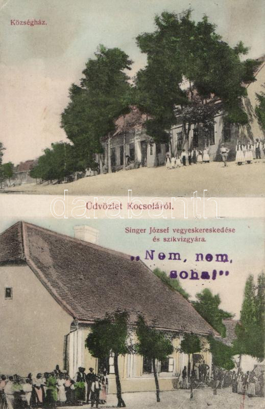 Kocsola Singer József vegyeskereskedése és szikvízgyára, községháza, i... https://www.darabanth.com/de/179-Fernauktion/179.0/Ansichtskarten/Ungarn~600006/Kocsola-Singer-Jozsef-vegyeskereskedese-es-szikvizgyara-kozseghaza-irredenta-pecset-a-lap~II633340