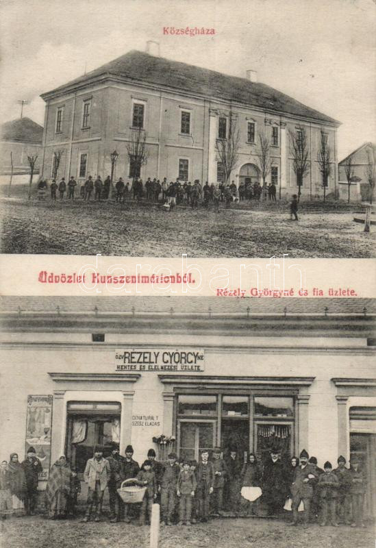 Kunszentmárton községháza, Rézely Györgyné és fia üzlete (fl) https://www.darabanth.com/de/179-Fernauktion/179.0/Ansichtskarten/Ungarn~600006/Kunszentmarton-kozseghaza-Rezely-Gyorgyne-es-fia-uzlete-fl~II634236