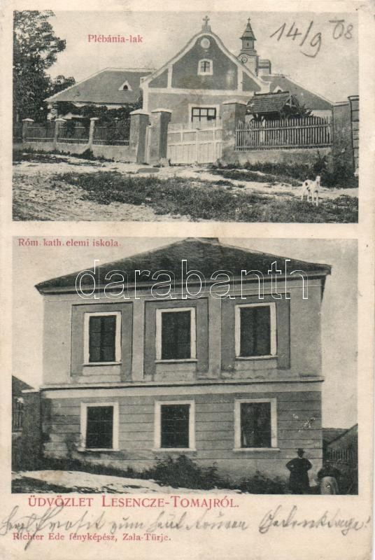 Lesencetomaj plébánialak, katolikus iskola (b) https://www.darabanth.com/de/179-Fernauktion/179.0/Ansichtskarten/Ungarn~600006/Lesencetomaj-plebanialak-katolikus-iskola-b~II634086