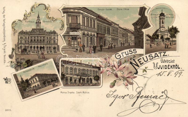 1899 Újvidék town hall, Danube street, Almási church, school, Matica s... https://www.darabanth.com/de/179-Fernauktion/179.0/Ansichtskarten/Vojvodina~600011/1899-Ujvidek-town-hall-Danube-street-Almasi-church-school-Matica-srpska-litho~II633149