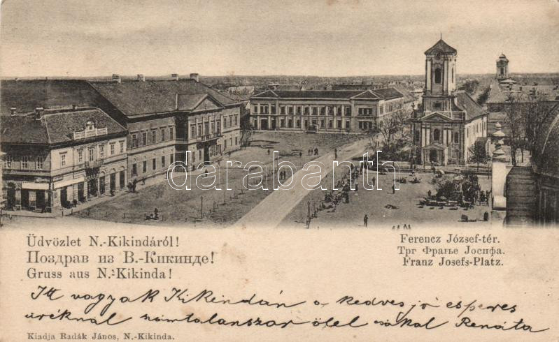 Nagykikinda Franz Joseph square, the shop of Wolf (fl) https://www.darabanth.com/de/179-Fernauktion/179.0/Ansichtskarten/Vojvodina~600011/Nagykikinda-Franz-Joseph-square-the-shop-of-Wolf-fl~II634671