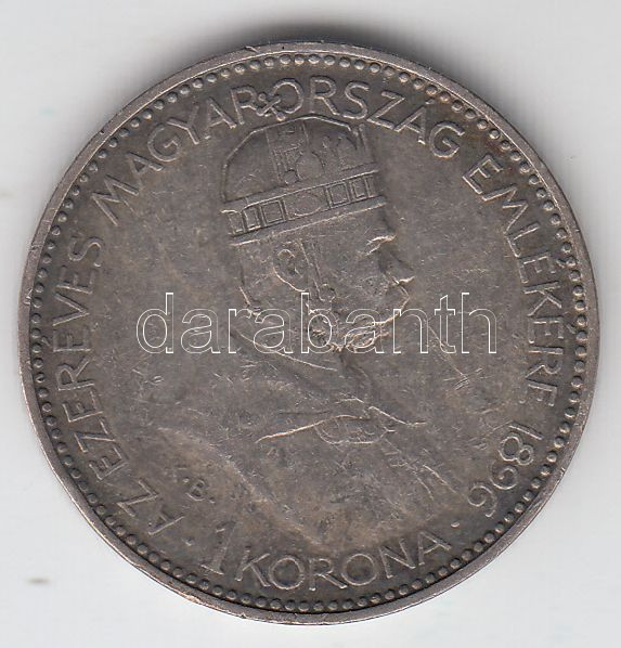 1896KB. 1K Ag "Millenium" T:2- https://www.darabanth.com/de/179-Fernauktion/179.0/Numismatik/Ungarische-Munzen~300009/1896KB-1K-Ag-Millenium-T2-~II626391