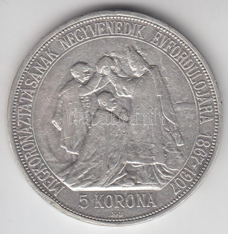 1907KB. 5K Ag "Koronázási évforduló" T:3 https://www.darabanth.com/de/179-Fernauktion/179.0/Numismatik/Ungarische-Munzen~300009/1907KB-5K-Ag-Koronazasi-evfordulo-T3~II629863