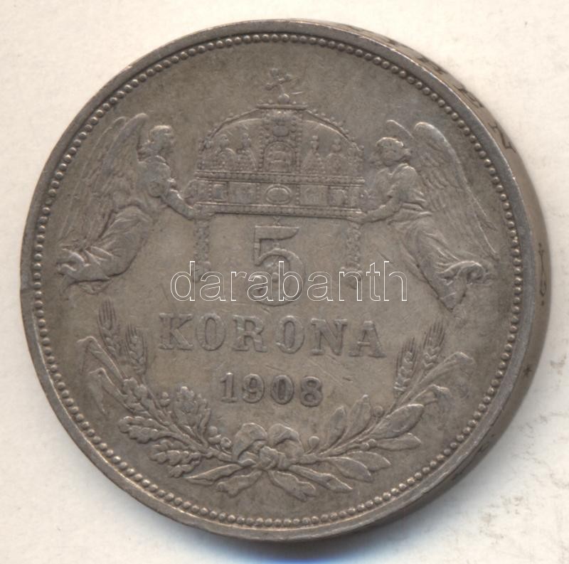 1908. 5K Ag "Ferenc József" T:3 https://www.darabanth.com/de/179-Fernauktion/179.0/Numismatik/Ungarische-Munzen~300009/1908-5K-Ag-Ferenc-Jozsef-T3~II625931