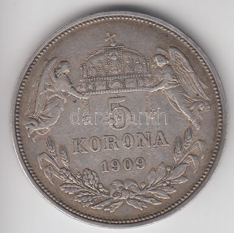 1909. 5K Ag "Ferenc József" T:2- https://www.darabanth.com/de/179-Fernauktion/179.0/Numismatik/Ungarische-Munzen~300009/1909-5K-Ag-Ferenc-Jozsef-T2-~II631160