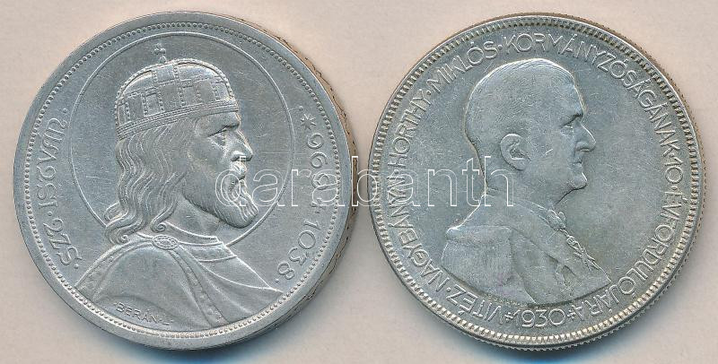 1930. 5P Ag "Horthy-jobbra" T:2- + 1938. 5P Ag "Szent István" T:2- https://www.darabanth.com/de/179-Fernauktion/179.0/Numismatik/Ungarische-Munzen~300009/1930-5P-Ag-Horthy-jobbra-T2-plus-1938-5P-Ag-Szent-Istvan-T2-~II633218