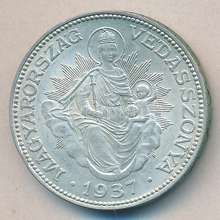 1937. 2P Ag "Madonna" T:1-,2 https://www.darabanth.com/de/179-Fernauktion/179.0/Numismatik/Ungarische-Munzen~300009/1937-2P-Ag-Madonna-T1-2~II631787