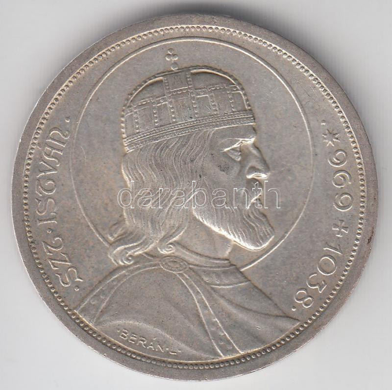 Beschreibung: 1938. 5P Ag "Szent István" T:2