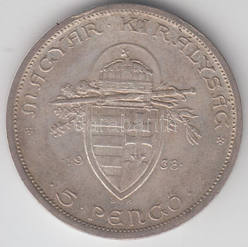1938. 5P Ag "Szent István" T:2 https://www.darabanth.com/de/179-Fernauktion/179.0/Numismatik/Ungarische-Munzen~300009/1938-5P-Ag-Szent-Istvan-T2~II626363