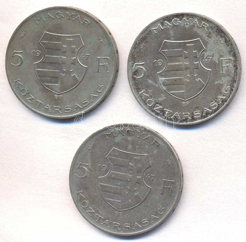 1947. 5Ft Ag "Kossuth" (3x) T:vegyes https://www.darabanth.com/de/179-Fernauktion/179.0/Numismatik/Ungarische-Munzen~300009/1947-5Ft-Ag-Kossuth-3x-Tvegyes~II635708