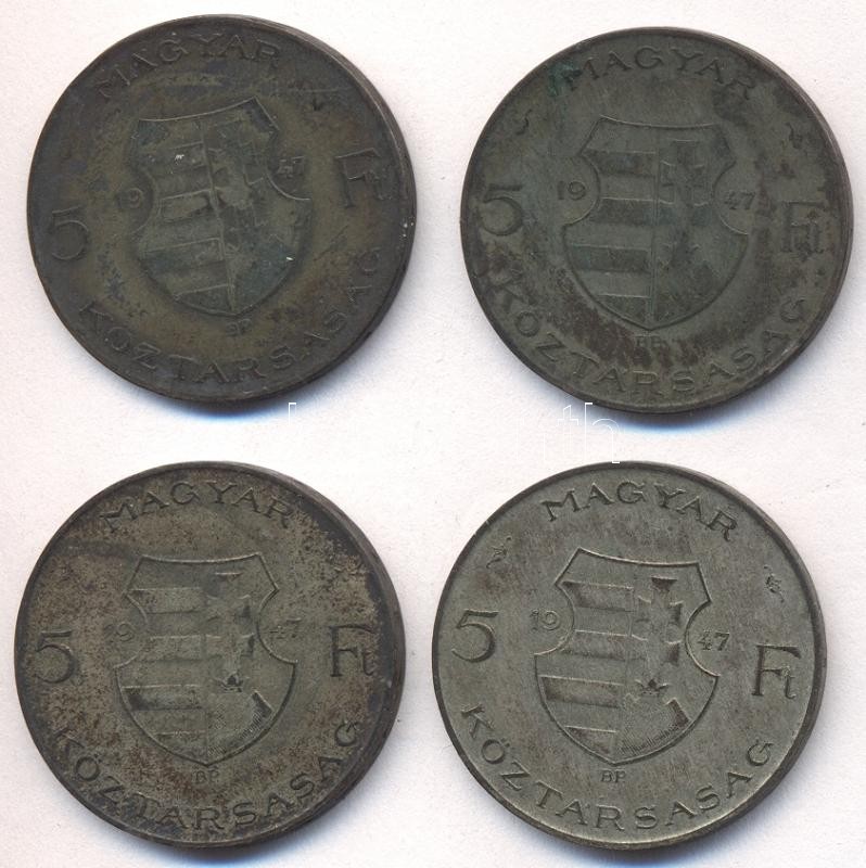 1947. 5Ft Ag "Kossuth" (4x) T:vegyes https://www.darabanth.com/de/179-Fernauktion/179.0/Numismatik/Ungarische-Munzen~300009/1947-5Ft-Ag-Kossuth-4x-Tvegyes~II635910