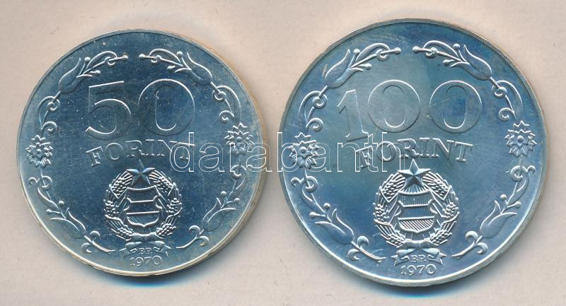 1970. 50Ft Ag + 100Ft "Felszabadulás" pár T:BU https://www.darabanth.com/de/179-Fernauktion/179.0/Numismatik/Ungarische-Munzen~300009/1970-50Ft-Ag-plus-100Ft-Felszabadulas-par-TBU~II631102