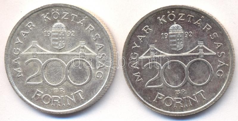1992. 200Ft Ag "MNB" (2x) T:2 https://www.darabanth.com/de/179-Fernauktion/179.0/Numismatik/Ungarische-Munzen~300009/1992-200Ft-Ag-MNB-2x-T2~II635851