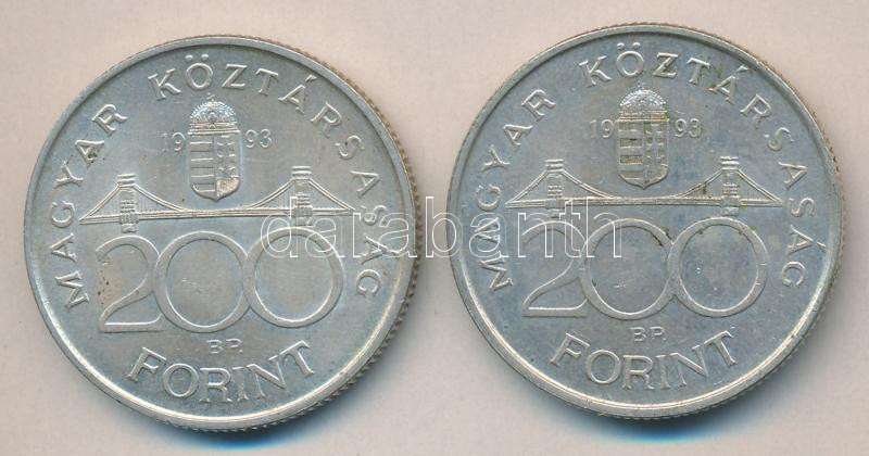 Beschreibung: 1993. 200Ft Ag "MNB" (2x) T:2,2-