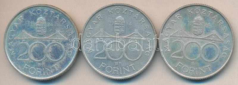 1994. 200Ft Ag "Deák" (3x) T:2 https://www.darabanth.com/de/179-Fernauktion/179.0/Numismatik/Ungarische-Munzen~300009/1994-200Ft-Ag-Deak-3x-T2~II631438