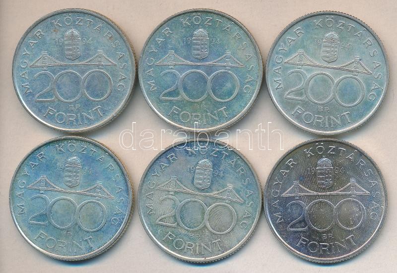 1994. 200Ft Ag "Deák" (6x) T:2,2- https://www.darabanth.com/de/179-Fernauktion/179.0/Numismatik/Ungarische-Munzen~300009/1994-200Ft-Ag-Deak-6x-T2-2-~II631450