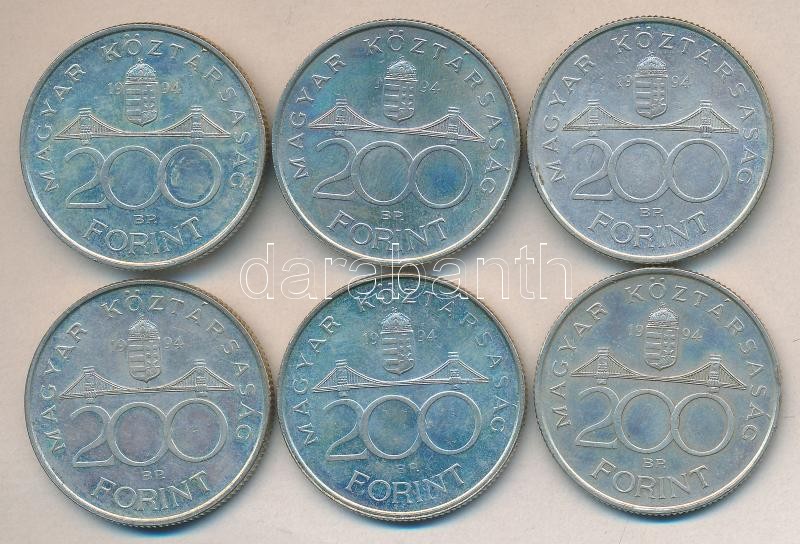 1994. 200Ft Ag "Deák" (6x) T:2,2- https://www.darabanth.com/de/179-Fernauktion/179.0/Numismatik/Ungarische-Munzen~300009/1994-200Ft-Ag-Deak-6x-T2-2-~II631452
