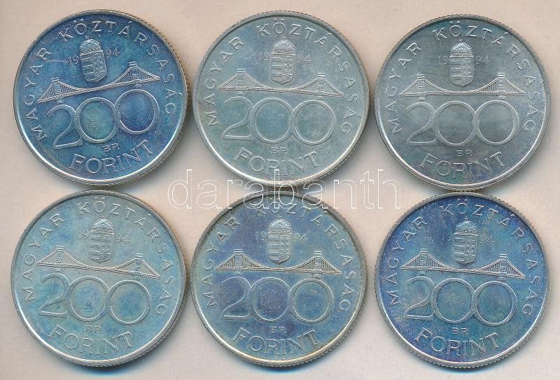 1994. 200Ft Ag "Deák" (6x) T:2 https://www.darabanth.com/de/179-Fernauktion/179.0/Numismatik/Ungarische-Munzen~300009/1994-200Ft-Ag-Deak-6x-T2~II631449