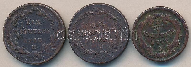 Ausztria / magyar verdejel 1777S 1/2Kr + 1780K 1Kr + 1780S 1Kr T:2-,3 https://www.darabanth.com/de/179-Fernauktion/179.0/Numismatik/Ungarische-Munzen~300009/Ausztria-magyar-verdejel-1777S-12Kr-plus-1780K-1Kr-plus-1780S-1Kr-T2-3~II633363