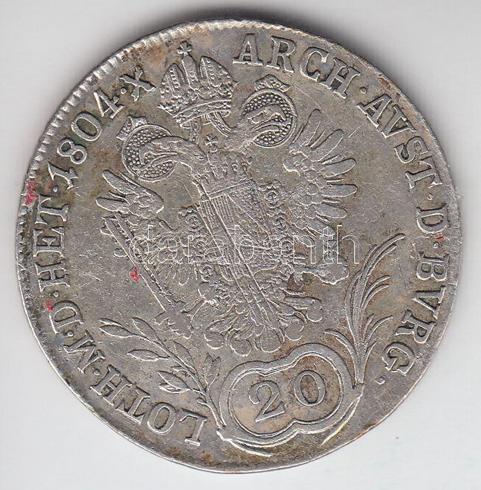 Ausztria/magyar verdejel 1804B 20Kr Ag "II. Ferenc" T:1-,2 juszt. https://www.darabanth.com/de/179-Fernauktion/179.0/Numismatik/Ungarische-Munzen~300009/Ausztriamagyar-verdejel-1804B-20Kr-Ag-II-Ferenc-T1-2-juszt~II630105