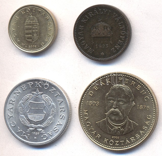 Vegyes 4db-os tétel, közte: 1989. 1Ft "rövid sugaras" + 2006. 1Ft "MAG... https://www.darabanth.com/de/179-Fernauktion/179.0/Numismatik/Ungarische-Munzen~300009/Vegyes-4db-os-tetel-kozte-1989-1Ft-rovid-sugaras-plus-2006-1Ft-MAGYAR-Tvegyes~II636922