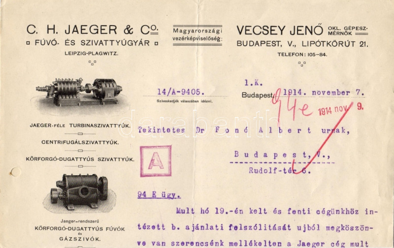 Beschreibung: 1914 Dekoratív céges levélpapír