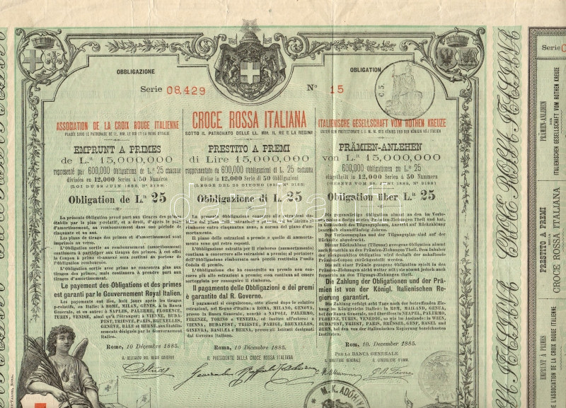 1885 Olasz vöröskereszt dekoratív sorsjegy kötvény https://www.darabanth.com/de/18-Fernauktion/18.0/Andere-Sammelgebiete/~209/1885-Olasz-voroskereszt-dekorativ-sorsjegy-kotveny~II32634