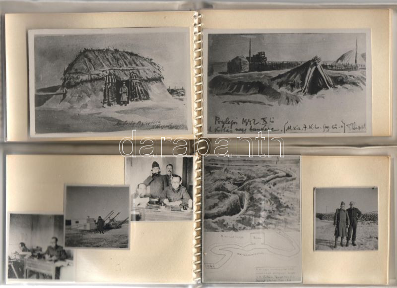 Dr. Balta Béla orvosszázados frontkórház-igazgató részére készült 2 db fotó emlékalbum 1942-43-ban ukrajnai frontkórházakban készült fotókkal illetve rajzokról készült fényképekkel