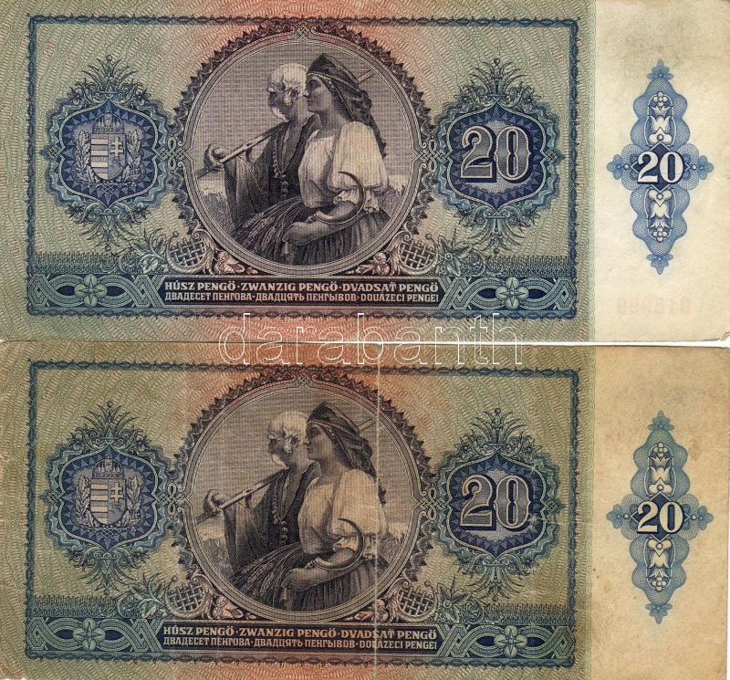 1941 20P erősen lefelé tolódott tévnyomat támpéldánnyal! T:II/III https://www.darabanth.com/de/18-Fernauktion/18.0/Numismatik/~197/1941-20P-erosen-lefele-tolodott-tevnyomat-tampeldannyal-TIIIII~II32922