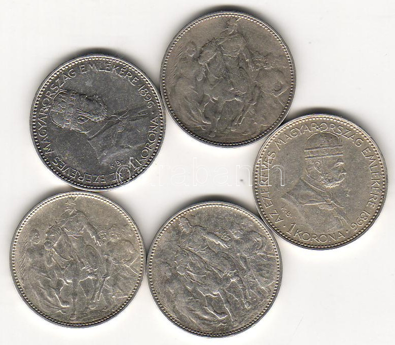Beschreibung: 1896 "Ezeréves..." 1K ezüst 5 db T:3/4 ezüstáron!