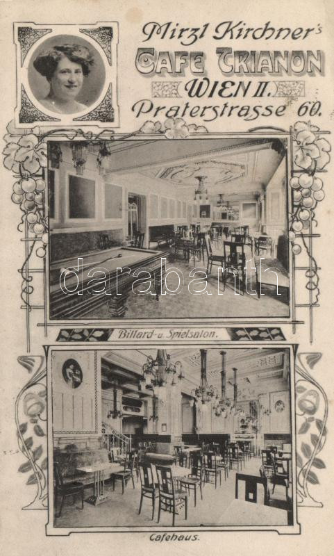 Vienna, Wien II. Mirzl Kirchner's Cafe Trianon, Billard- und Spielsalo... https://www.darabanth.com/de/18-Gross-Auktion/18.1/Ansichtskarten-Ausland/Osterreich~6163/Vienna-Wien-II-Mirzl-Kirchners-Cafe-Trianon-Billard-und-Spielsalon-Cafehaus-cafe-billiard-a~II853709