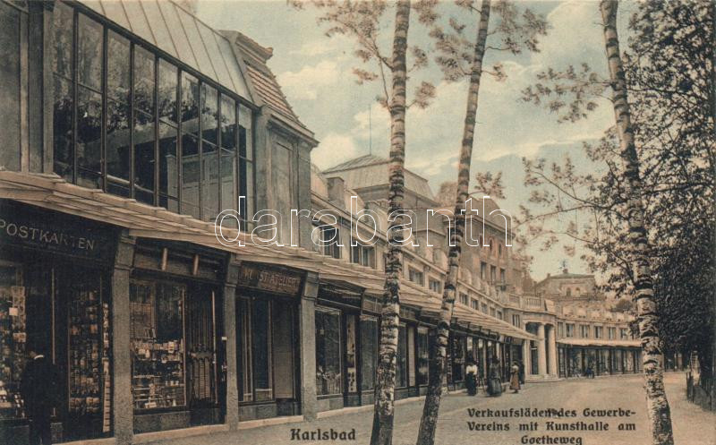 Karlovy Vary, Karlsbad; Goetheweg, Verkaufsläden des Gewerbevereins, K... https://www.darabanth.com/de/18-Gross-Auktion/18.1/Ansichtskarten-Ausland/Tschechische-Republik~6176/Karlovy-Vary-Karlsbad-Goetheweg-Verkaufsladen-des-Gewerbevereins-Kunsthalle-Kunstverlag-Max-Eb~II830125