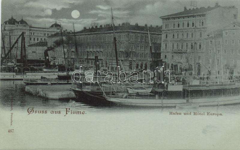Fiume, Hafen, Hotel Europa / ship station https://www.darabanth.com/de/18-Gross-Auktion/18.1/Ansichtskarten-Ungarn/Kroatien~6150/Fiume-Hafen-Hotel-Europa-ship-station~II823427