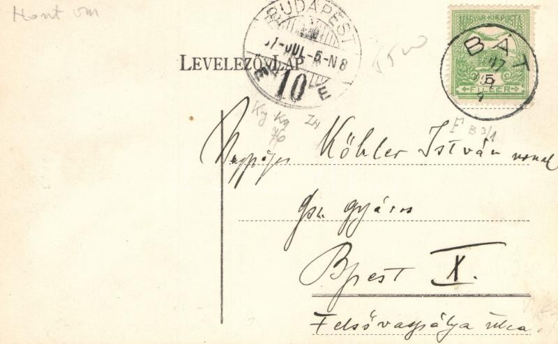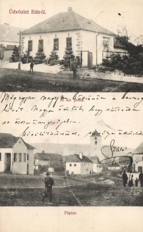 Beschreibung: Bát, Magyar Királyi posta, Fő piac / post office, market