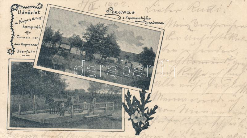 Kopcsány, Kopcany; komp / ferry, Art Nouveau (EK) https://www.darabanth.com/de/18-Gross-Auktion/18.1/Ansichtskarten-Ungarn/Slowakei~6148/Kopcsany-Kopcany-komp-ferry-Art-Nouveau-EK~II853972