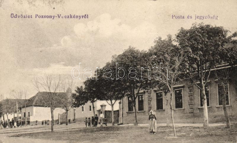 Pozsonyvezekény, Posta, Jegyzőség / post office, notary (EK) https://www.darabanth.com/de/18-Gross-Auktion/18.1/Ansichtskarten-Ungarn/Slowakei~6148/Pozsonyvezekeny-Posta-Jegyzoseg-post-office-notary-EK~II854955