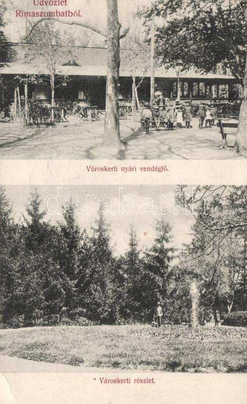 Rimaszombat, Városkert, Nyári vendéglő, Lévai Izsó kiadása / garden, r... https://www.darabanth.com/de/18-Gross-Auktion/18.1/Ansichtskarten-Ungarn/Slowakei~6148/Rimaszombat-Varoskert-Nyari-vendeglo-Levai-Izso-kiadasa-garden-restaurant-EK~II855273