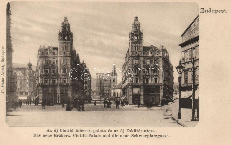 Budapest V. Klotild-paloták, az épülő Erzsébet híd; Ganz Antal https://www.darabanth.com/de/18-Gross-Auktion/18.1/Ansichtskarten-Ungarn/Ungarn~6146/Budapest-V-Klotild-palotak-az-epulo-Erzsebet-hid-Ganz-Antal~II854964