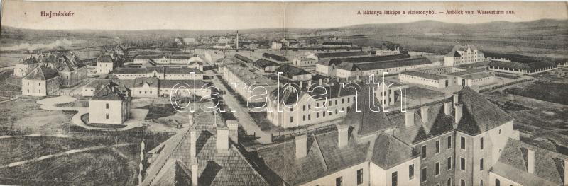 Beschreibung: Hajmáskér, Laktanya a víztoronyból; panoramacard (fl)
