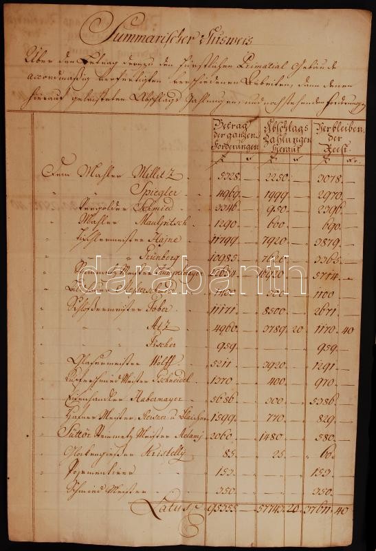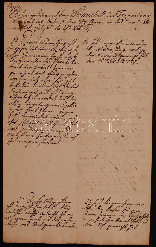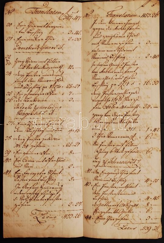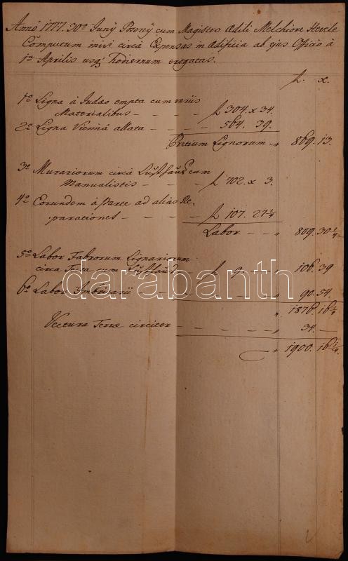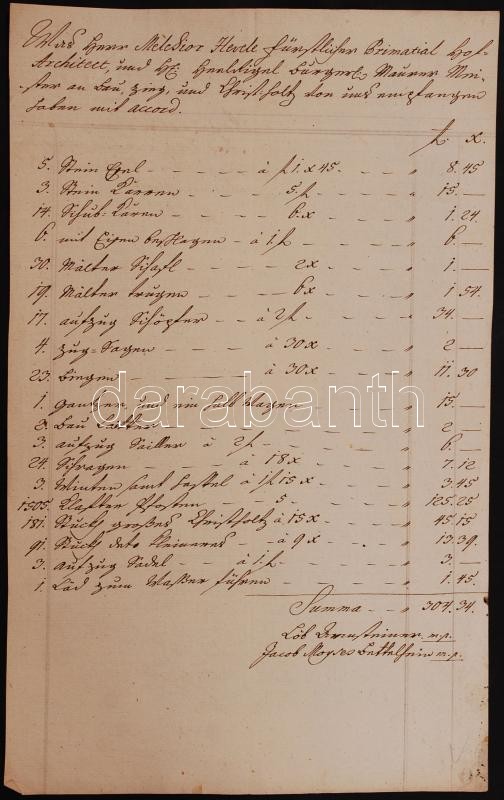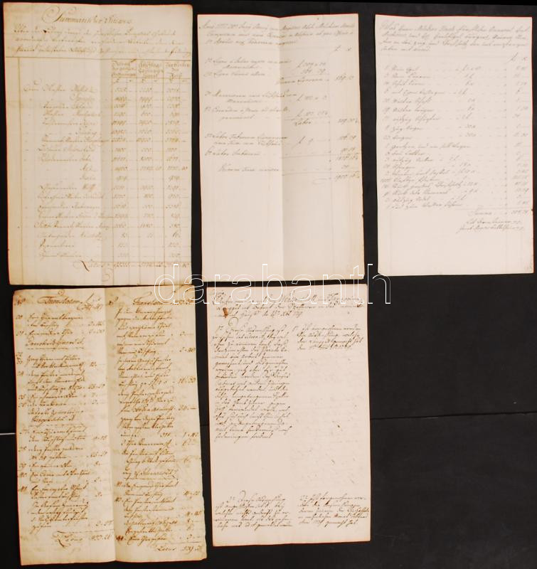 Védett! 1777-79 Melchior Hefele (Hevele Menyhért) (1716-1794) építész és Pozsonyi városi tanács költség számításai a Pozsonyi prímási palota munkálataira. 5 db kézzel írt írat / Protected! 1777-79 Melchior Hefele and the council of Pressburg calculations for the costs of the primal palace