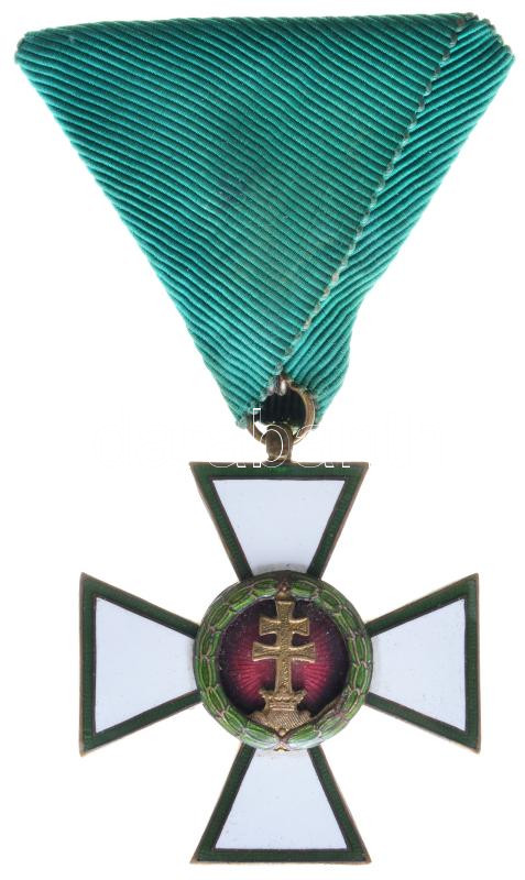 Hungary 1935-1945. Hungarian Order of Merit IV class, knight cross, enamelled bronze decoration on green ribbon C:UNC,AU
