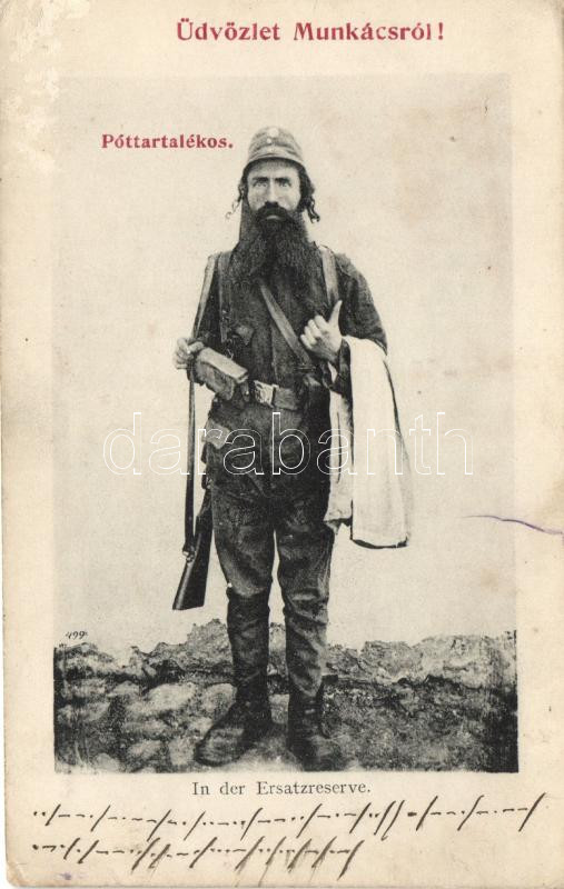 In der Ersatzreserve / Póttartalékos, Munkács / K.u.K. Jewish soldier,... https://www.darabanth.com/de/18-Gross-Auktion/18.1/Thematik-und-Kunstlerkarten/Judaica~6243/In-der-Ersatzreserve-Pottartalekos-Munkacs-KuK-Jewish-soldier-reservist-Judaica~II856011