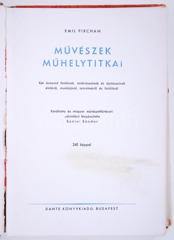 Emil Pirchan: Művészek műhelytitkai 240 képpel. Bp., é.n. Dante. Erede... https://www.darabanth.com/de/180-Fernauktion/180.0/Andere-Sammelgebiete/Bucher-Architektur-Kunst~400033/Emil-Pirchan-Muveszek-muhelytitkai-240-keppel-Bp-en-Dante-Eredeti-kisse-serult-papir~II643659