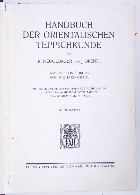 Rudolf Neugebauer und Julius Orendi: Orientalische Teppichkunde. Leipz... https://www.darabanth.com/de/180-Fernauktion/180.0/Andere-Sammelgebiete/Bucher-Architektur-Kunst~400033/Rudolf-Neugebauer-und-Julius-Orendi-Orientalische-Teppichkunde-Leipzig-1923-Verlag-von-Karl-W-Hi~II637918