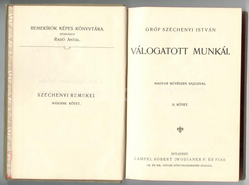 Széchenyi István válogatott munkái II. köt. Bp., é.n., Lampel. Remekír... https://www.darabanth.com/de/180-Fernauktion/180.0/Andere-Sammelgebiete/Bucher-Bucher-fur-niedrigen-Einstiegspreis~400037/Szechenyi-Istvan-valogatott-munkai-II-kot-Bp-en-Lampel-Remekirok-kepes-konyvtara-~II567195