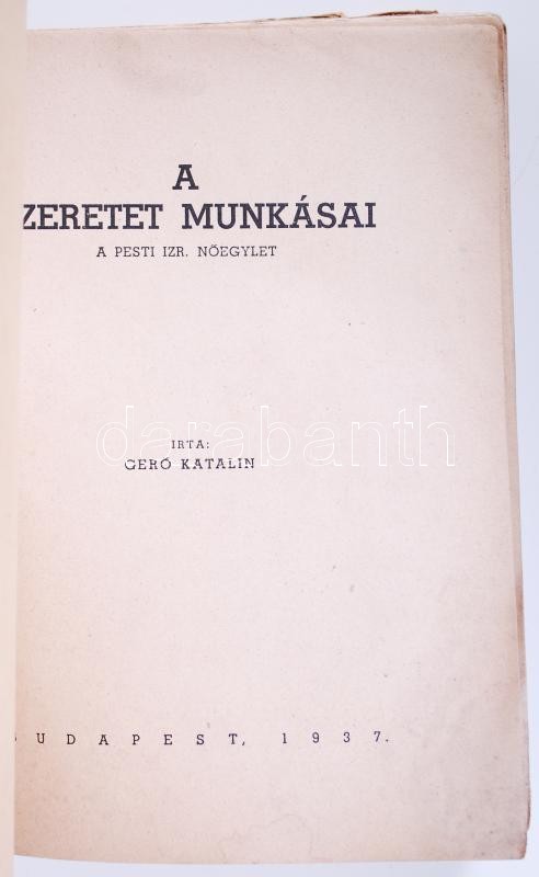 Gerő Katalin: A szeretet munkásai. A Pesti Izraelita Nőegylet történet... https://www.darabanth.com/de/180-Fernauktion/180.0/Andere-Sammelgebiete/Bucher-Judaica~800101/Gero-Katalin-A-szeretet-munkasai-A-Pesti-Izraelita-Noegylet-tortenete-1866-1937-3Cbr3EBp-193~II643656