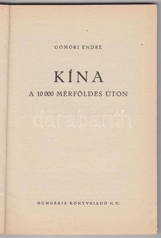 Gömöri Endre: Kína a tízezermérföldes úton. Hungária 1950. Egyetemi Nyomda. Gerinc levált