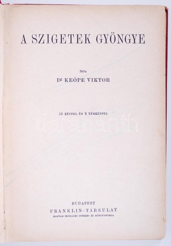 Magyar Földrajzi Társaság Könyvtára: Keöpe Viktor: A szigetek gyöngye.... https://www.darabanth.com/de/180-Fernauktion/180.0/Andere-Sammelgebiete/Bucher-Reisen-Stadte~400027/Magyar-Foldrajzi-Tarsasag-Konyvtara-Keope-Viktor-A-szigetek-gyongye-Aranyozott-kiadoi-egC3~II643364