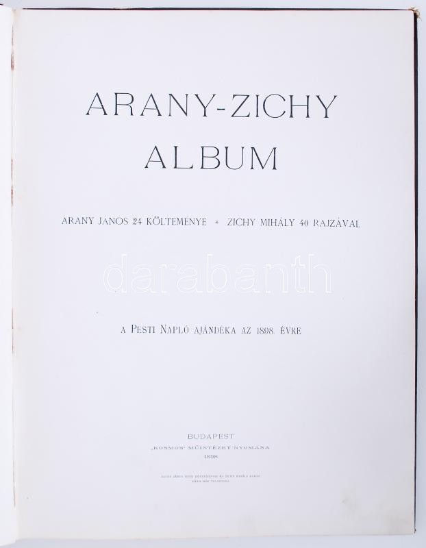 Arany-Zichy album. Bp., 1898 Kozmos. Gottermayer féle egészvászon köté... https://www.darabanth.com/de/180-Fernauktion/180.0/Andere-Sammelgebiete/Bucher-Sonstige-Raritaten~400036/Arany-Zichy-album-Bp-1898-Kozmos-Gottermayer-fele-egeszvaszon-kotesben-Gerincen-kis-hibC3~II638750